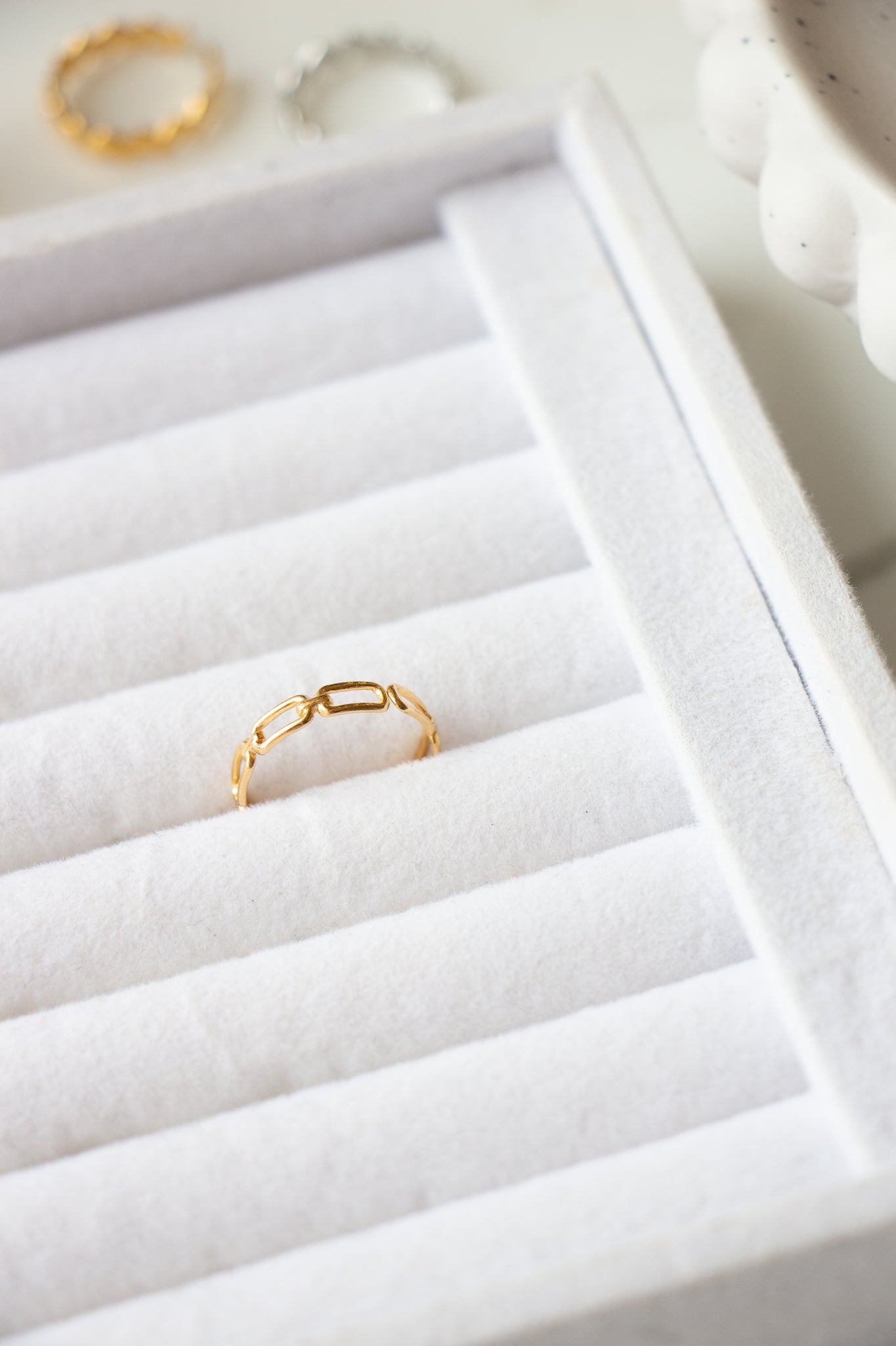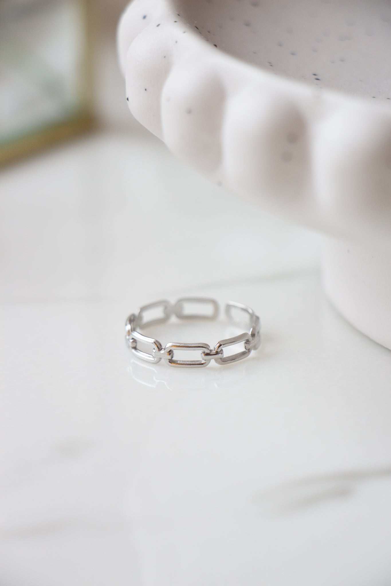 Lightweight and classic, the Delicate Chain Ring adds a subtle touch of texture to your everyday look. Crafted from non-tarnish stainless steel, this adjustable ring is designed for durability while maintaining a fine, minimalist feel. Adjustable from size 5.5 to 9.5, it’s perfect worn on its own or layered with your favourite rings.