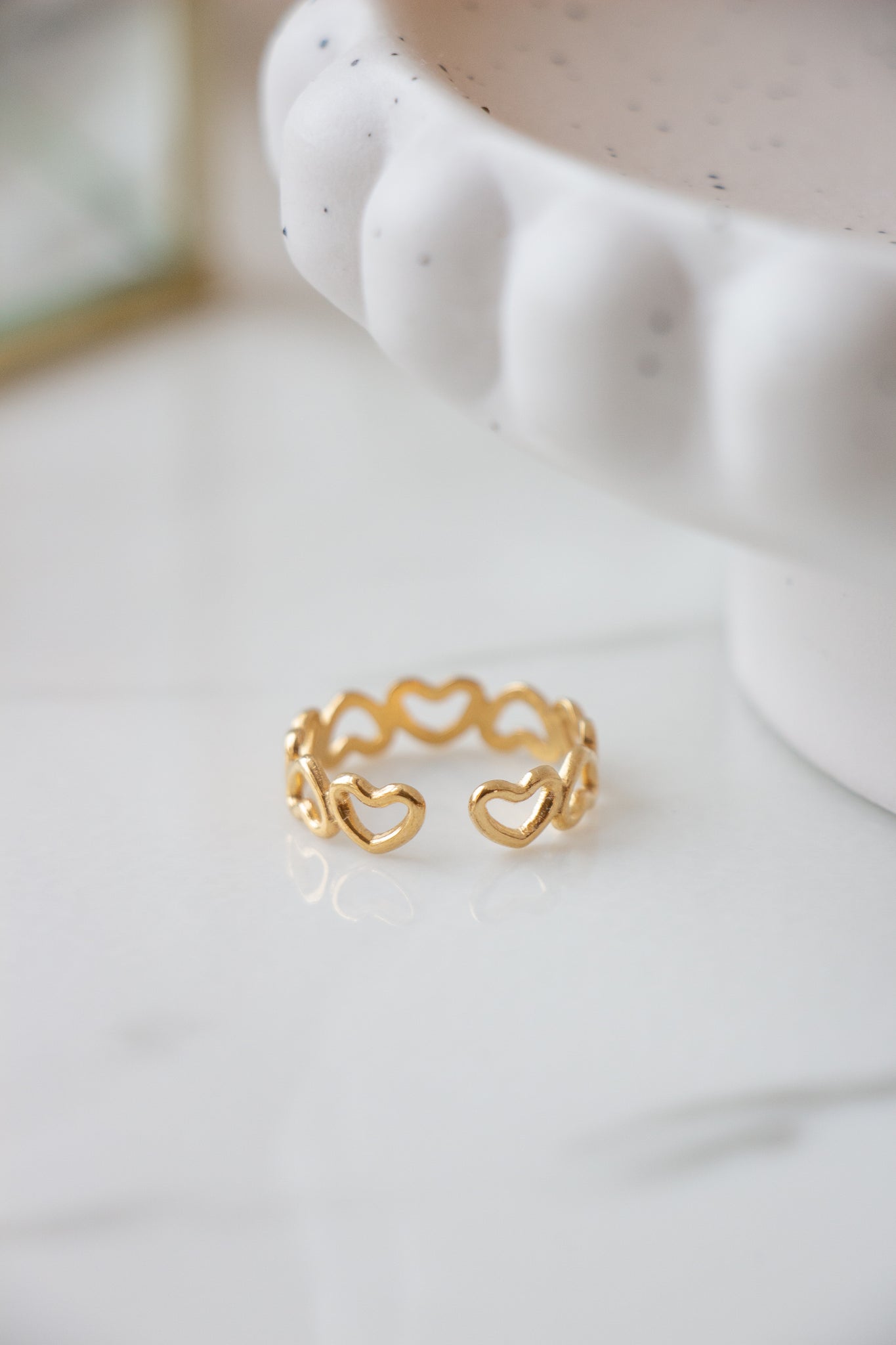 Cute and meaningful, the Heart Outline Ring features a delicate open heart design that's perfect for yourself or a special gift for someone you love. Made from non tarnish stainless steel and gold plated steel, this adjustable ring is designed to last while staying lightweight and comfortable. Adjustable from size 6 to 9.5, it’s perfect worn alone or stacked with your favourite rings.