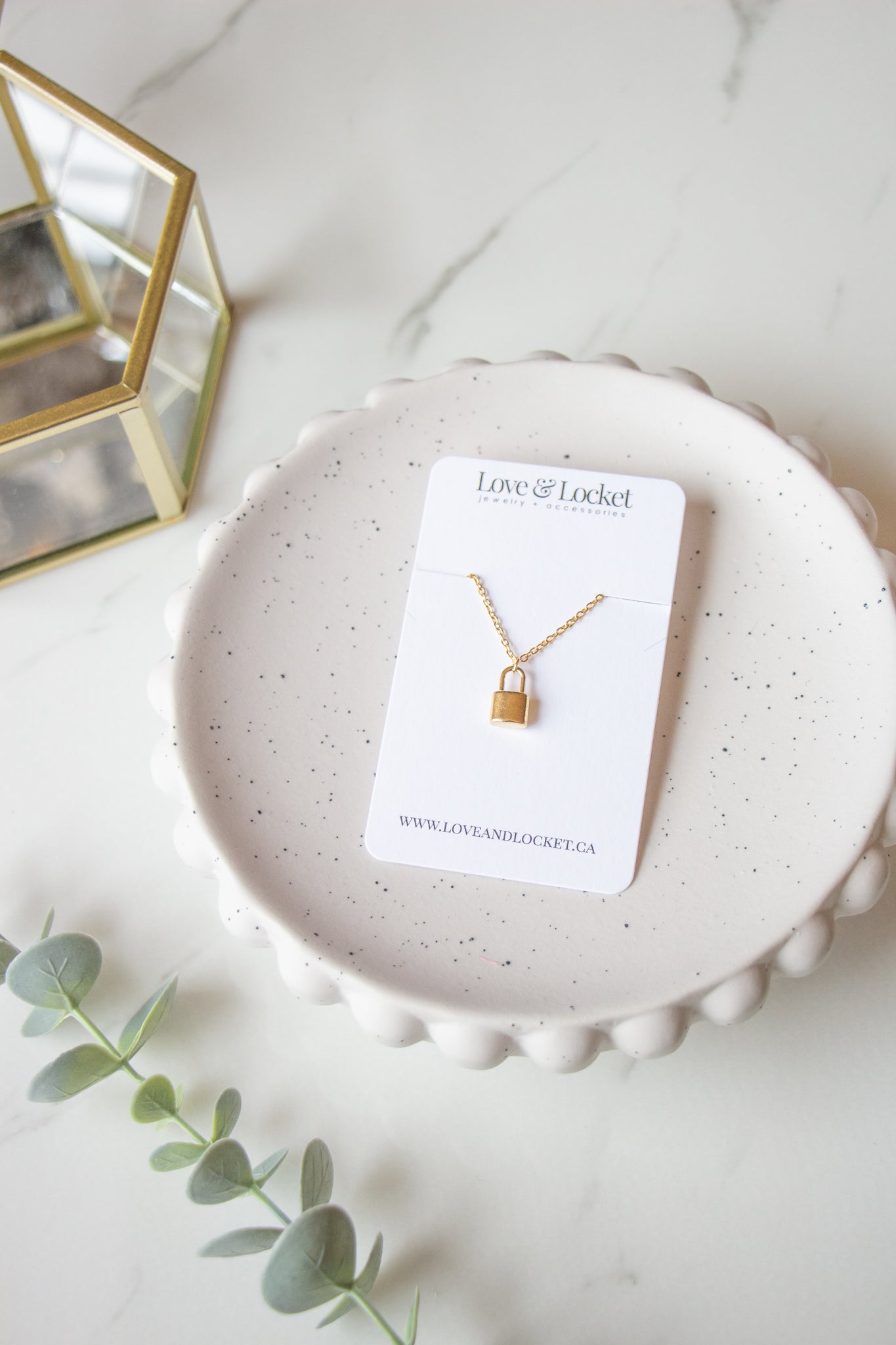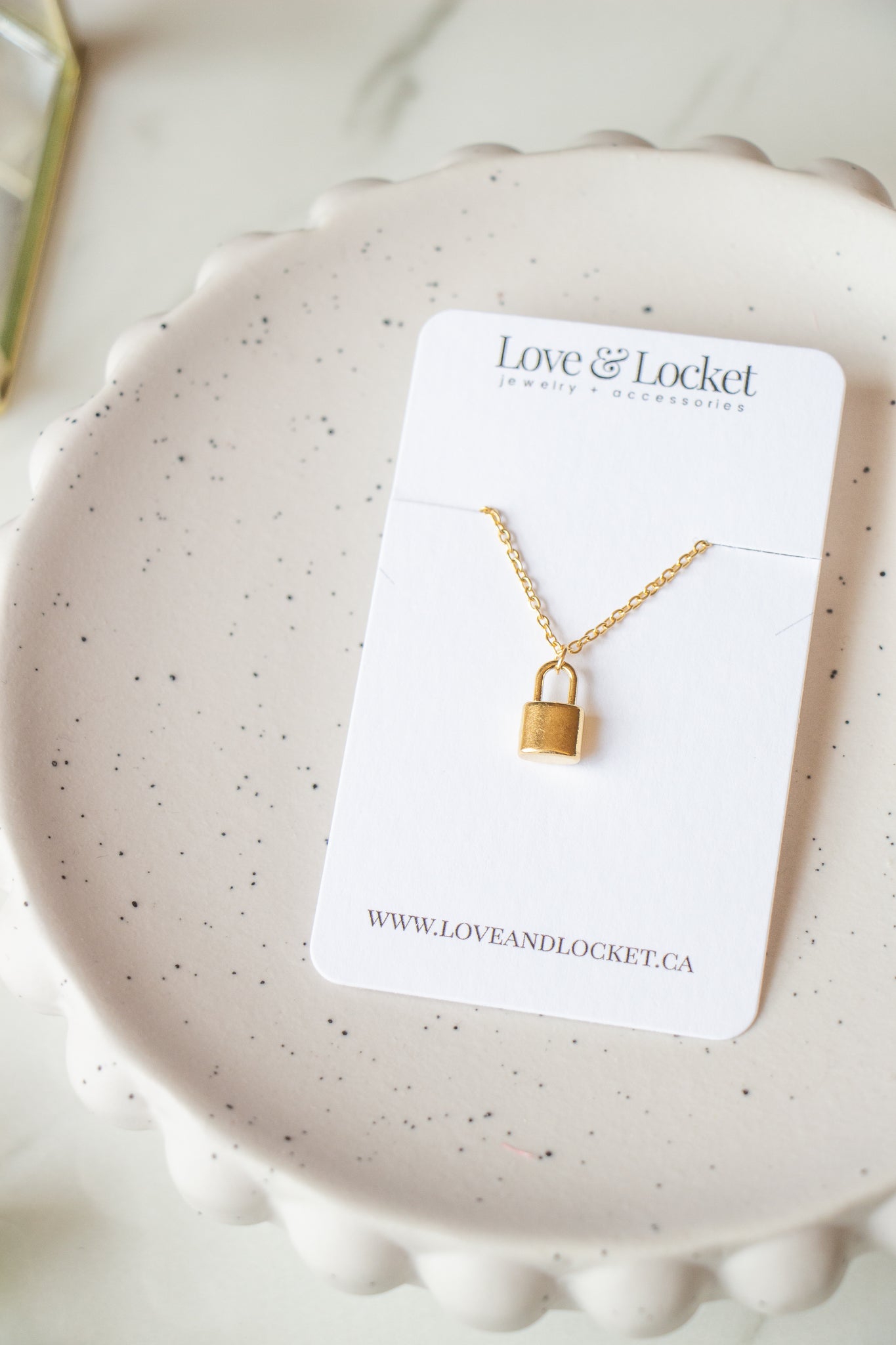 This cute lock necklace features a trendy lock charm paired with our classic stainless steel chain. Both the pendant and chain are made from gold plated/stainless steel, creating a timeless, everyday piece that’s easy to style and made to last.