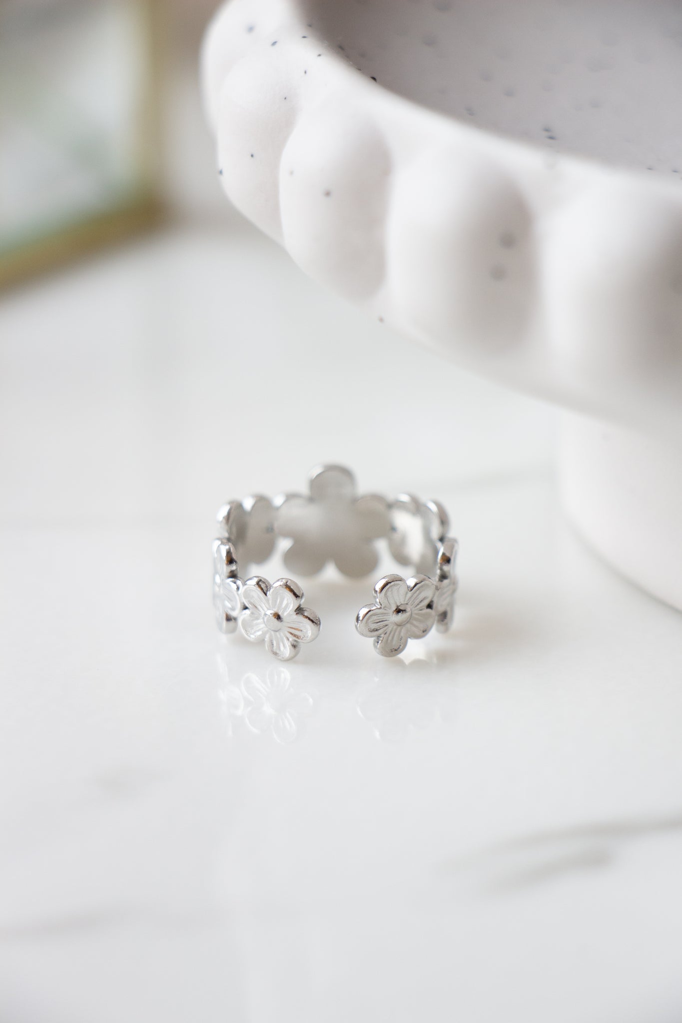 Sweet and summery, the Silver Daisy Ring features a continuous line of delicate daisy details that wrap around the finger for a cute, floral look. Crafted from durable stainless steel, this adjustable ring is designed for comfortable, everyday wear. It adds a soft touch of nature inspired style to any outfit.